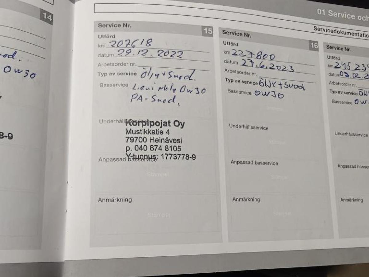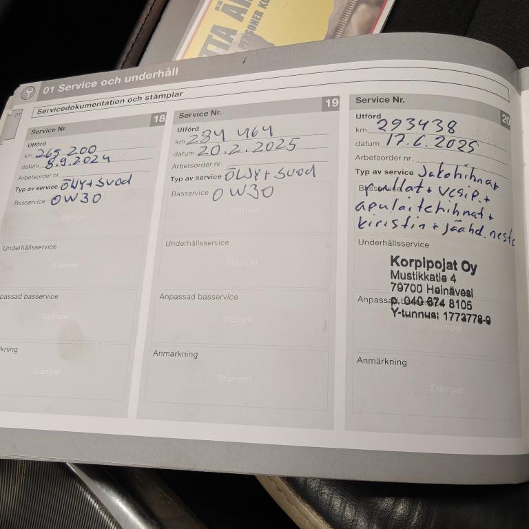 - Viimeinen huolto tehty 1.9.2025 299649km.