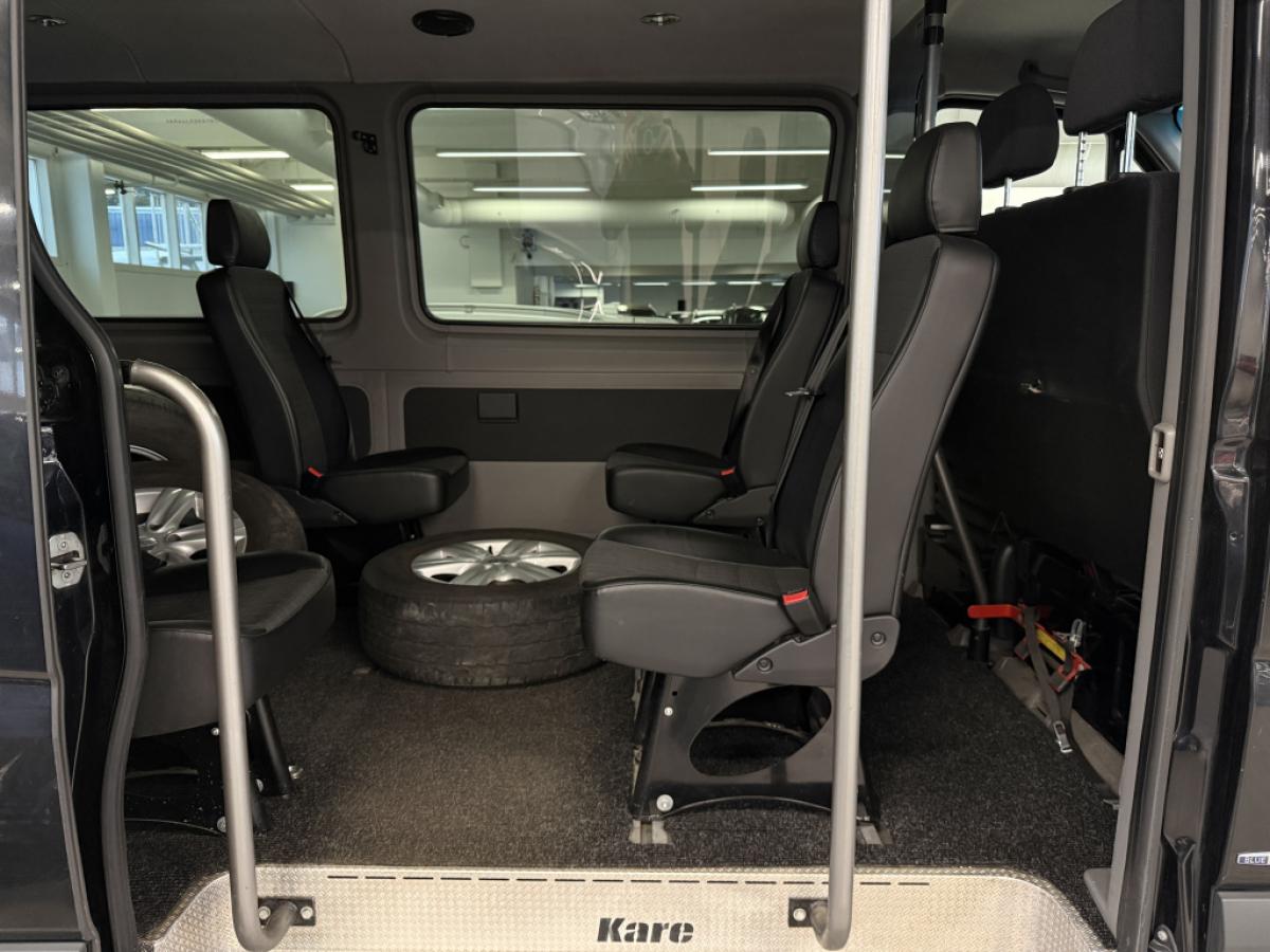Huolto-ohjelman mukaan huollettu 9-henkilön esteetön Sprinter.