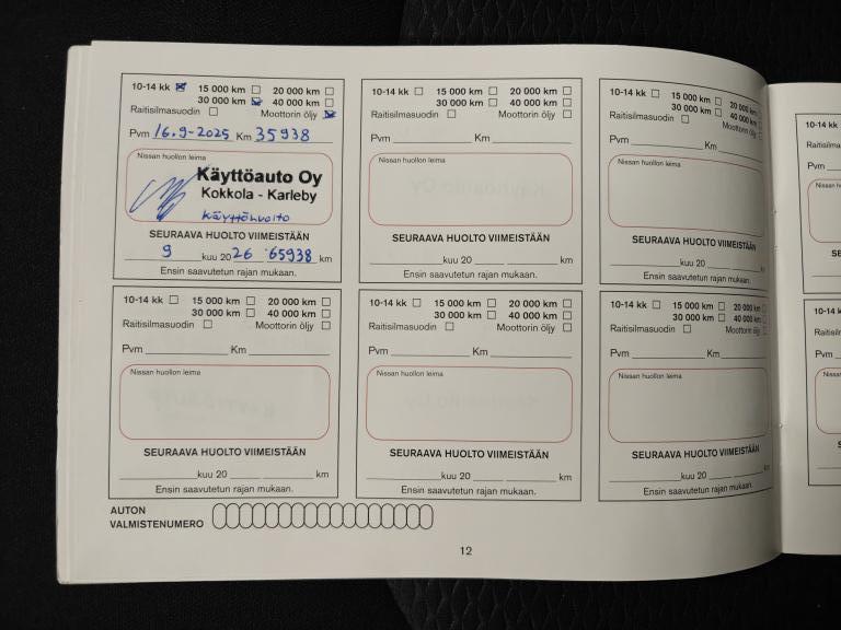 - Viimeisin huolto tehty 16.9.2025/35938km kohdalla