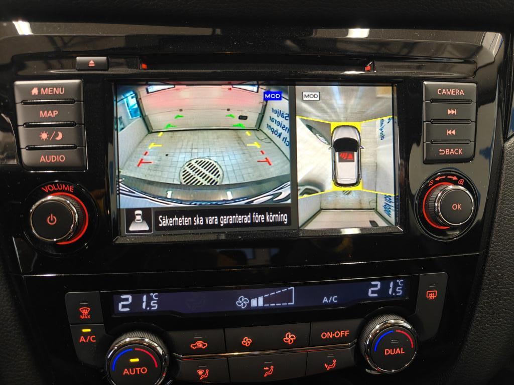 Integroitu NissanConnect-navigointi- ja -audiojärjestelmä (DAB),Around View Monitor -kamerajärjestelmä,Etu- ja takapysäköintitutka,Peruutuskamera,Aktiivinen pidonhallinta,ESP-ajovakaudenhallintajärjestelmä,Automaattinen ilmastointi kaksivyöhykkeisellä säädöllä,Stop/Start -järjestelmä,Etumatkustajan istuimen manuaalinen korkeussäätö,Etumatkustajan istuimen manuaalinen ristiselän tuen säätö,Kaksi ISOFIX-lastenistuimen kiinnityskohtaa takaistuimissa,Kuljettajan istuimen korkeussäätö,Kuljettajan istuimen manuaalinen ristiselän tuen säätö,Lämmitettävät etuistuimet,Premium-istuimet kangasverhoilulla,Suhteessa 60:40 jaettu taittuva takaistuin,Takana keskellä kyynärnoja (ja 2 mukitelinettä),Vakionopeudensäädin ja nopeudenrajoitin,Ajotietokone,sadetunnistin,Sähkötoimiset kauko-ohjattavat etu- ja takaikkunat, kuljettajan ikkunassa impulssikytkin,Takalasin pyyhkimessä tihkutoiminto ja automaattinen pyyhintä peruutettaessa,Tummennetut lasit takaikkunassa ja takasivuikkunassa,Tuulilasinpyyhkijät, joissa on ajonopeuden mukaan säätyvä tihkutoiminto,6 turvatyynyä (kuljettajan, etumatkustajan ja sivuturvatyynyt sekä ikkunaturvaverhot), poiskytkettävä etumatkustajan turvatyyny,ABS-jarrut, hätäjarrutustehostin ja EBD,Sähköinen käsijarru,Korinväriset peilinkuoret,Lämmitettävät, sähkötoimiset ja automaattisesti taittuvat sivupeilit,Ohjauspyörän kallistus ja teleskooppinen säätö,D-kirjaimen muotoinen nahkaverhoiltu ohjauspyörä ja vaihteenvalitsimen nuppi,Ajoasetuksen valinta (Normal / Sport),Apple CarPlay® Liitäntä,Haineväantenni,Matkapuhelimen hands free -toiminto Bluetooth-yhteyden avulla,MP3-yhteensopiva CD-soitin,USB-liitäntä ja iPod-yhteys,USB-pistokkeet 2. istuinriville,5" värillinen Advanced Drive - Assist Display (ADAD) -näyttö,7" kosketusnäyttö, AM/FM, MP3/AUX/ Bluetooth®,AUX-liitäntä,Yhden levyn AM/FM CD-soitin ja 6 kaiutinta,Takaovien lapsilukot