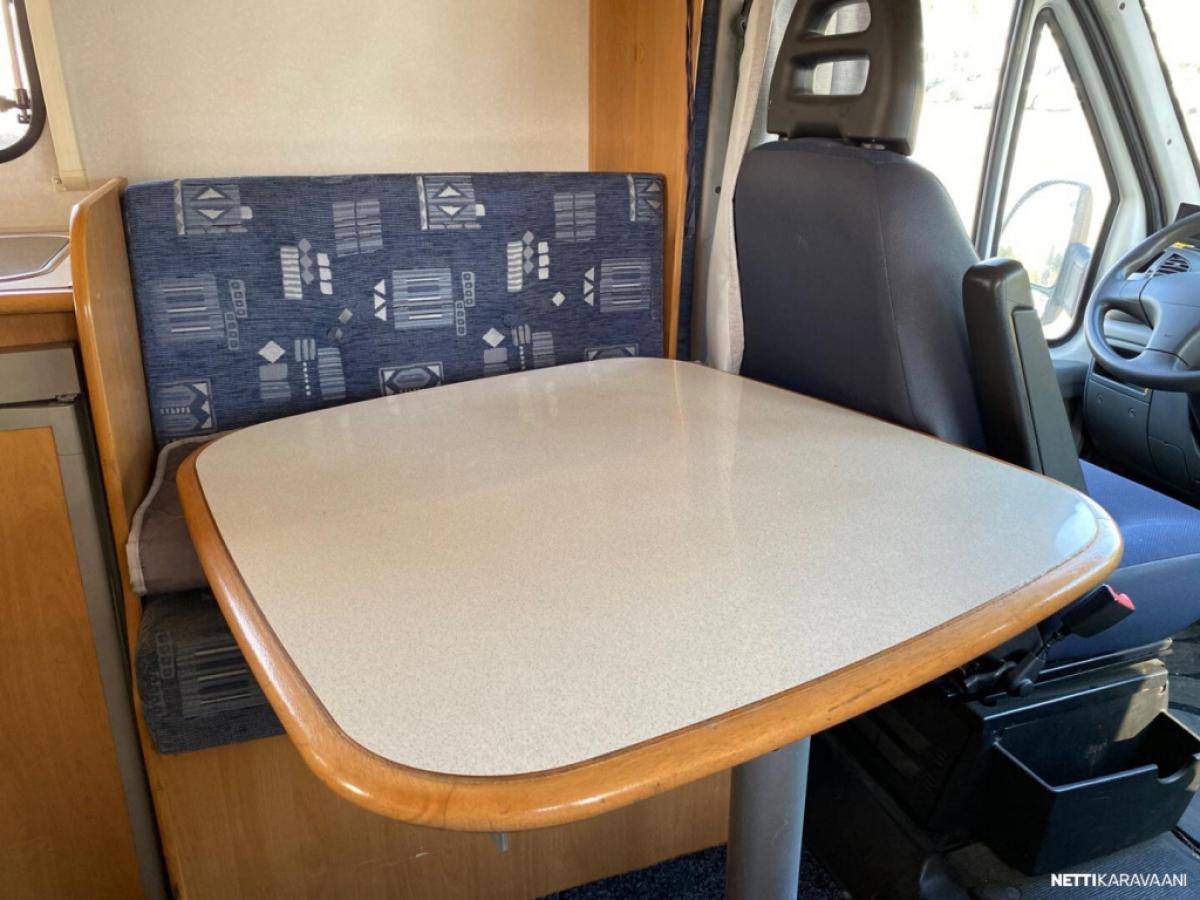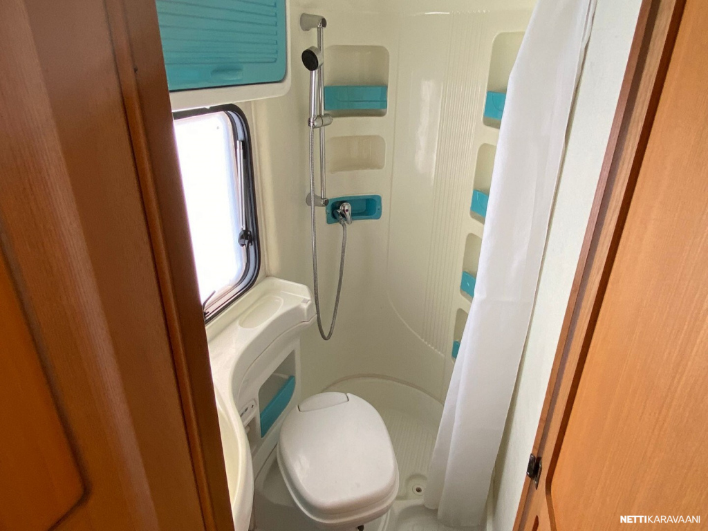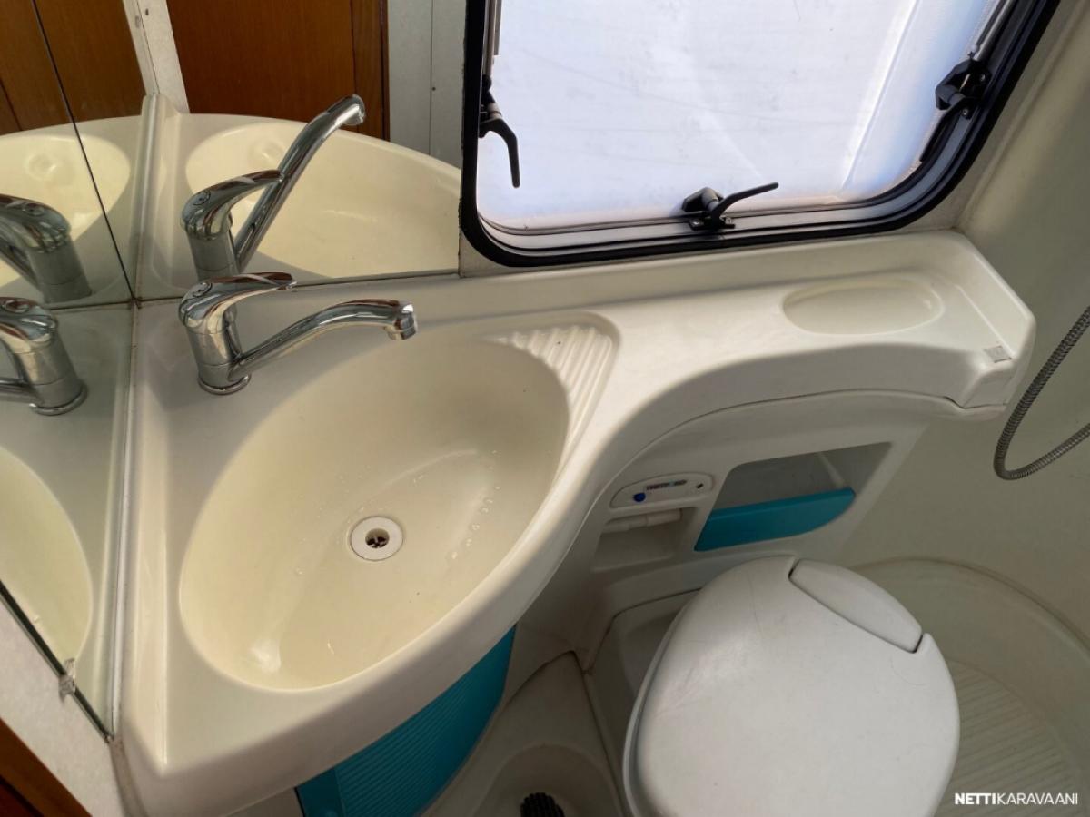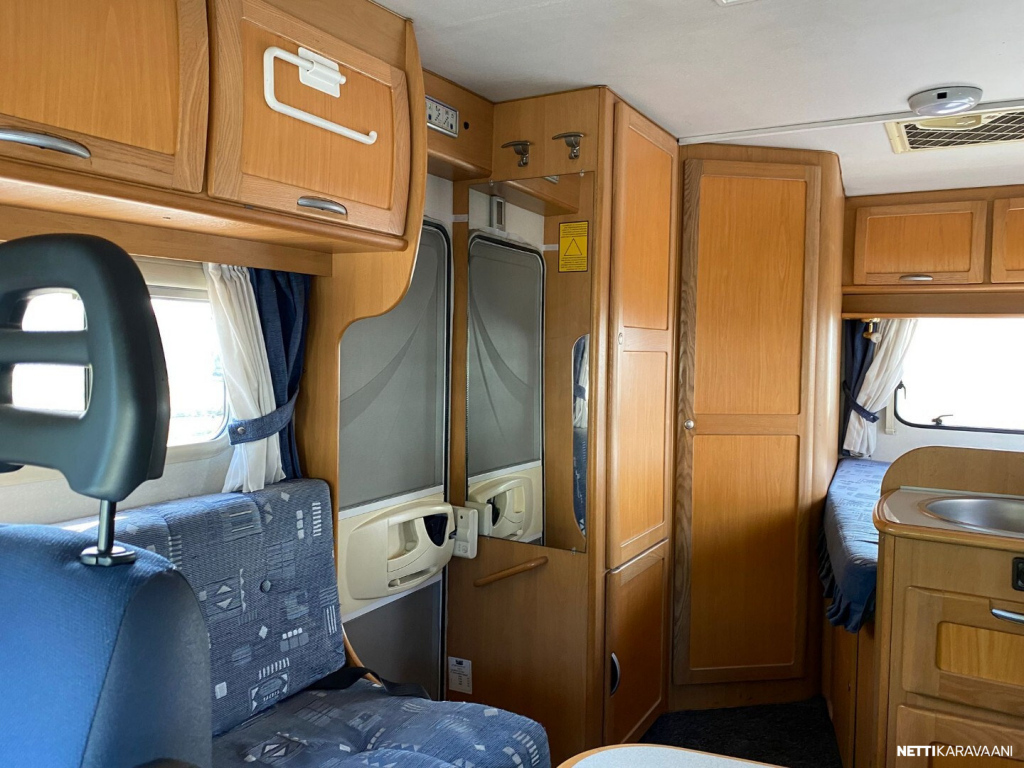 Jääkaappi, Kasetti WC, Keskuslukitus, Lattiamatot asunto-osassa, Liesi, Lämminvesiboileri, Markiisi, Ohjaustehostin, Pakastelokero, Parivuode, Pesuallas, Stereot, Suihku, TV-antenni tai lautasantenni