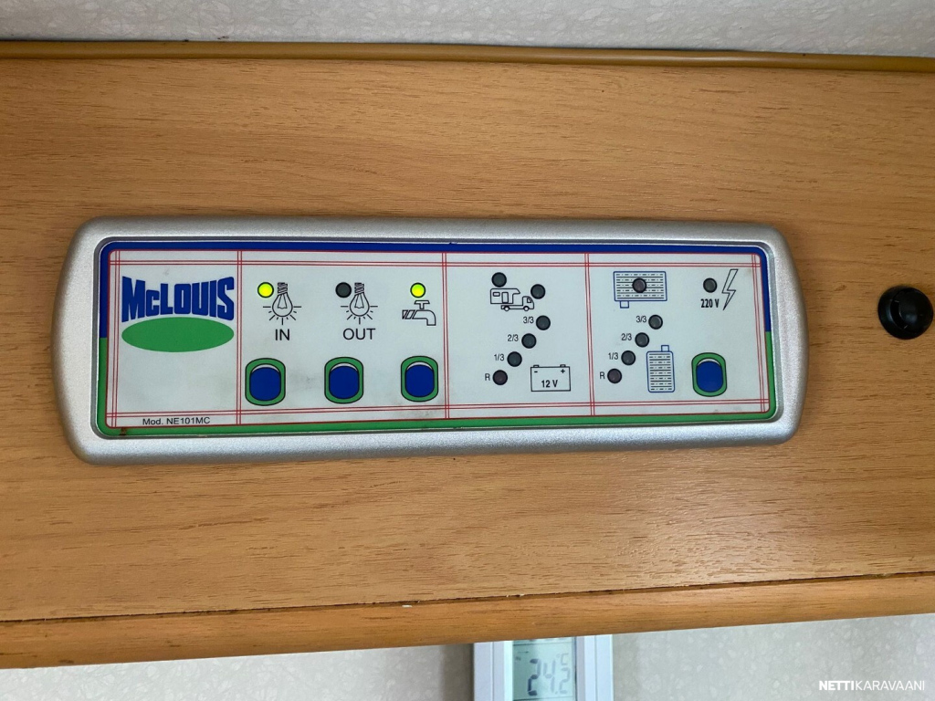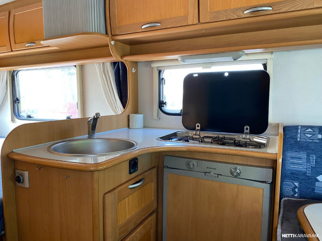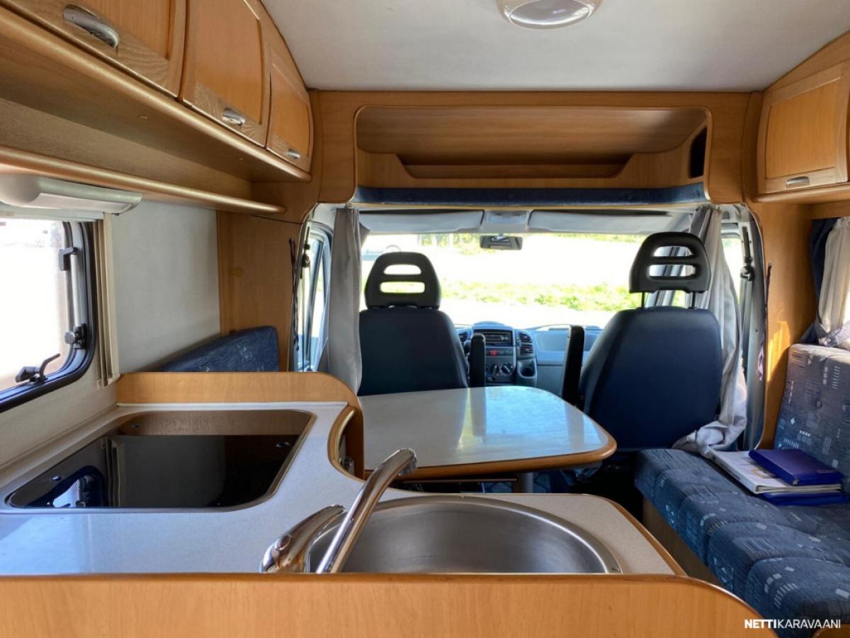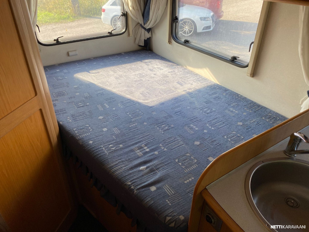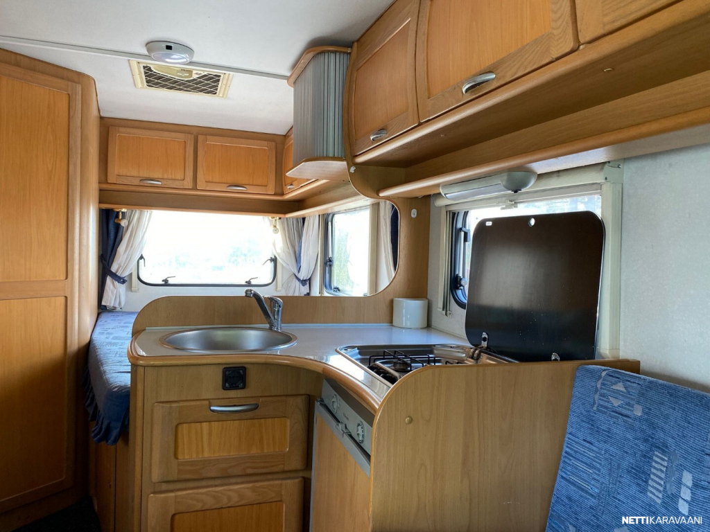 Jääkaappi, Kasetti WC, Keskuslukitus, Lattiamatot asunto-osassa, Liesi, Lämminvesiboileri, Markiisi, Ohjaustehostin, Pakastelokero, Parivuode, Pesuallas, Stereot, Suihku, TV-antenni tai lautasantenni