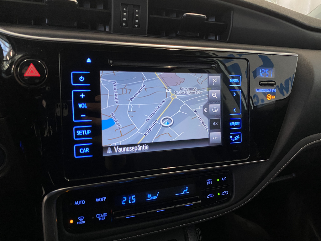 Peruutuskamera (Toyota Touch -näytöllä),Ajonvakautus (VSC+), luistonesto (TRC) ja hätäjarrutehostin (BA),Automaattinen ilmastointilaite,Kuljettajan istuimen korkeudensäätö,Kuljettajan istuin säädettävällä ristiseläntuella,Kuljettajan ja etumatkustajan niskavammoja torjuva istuinrakenne,Kyynärnoja edessä,Kyynärnoja takana,Lehtitaskut etuistuinten selkänojissa,Lämmitettävät etuistuimet,Yhdellä liikkeellä taittuvat takaistuimet, jaettu 60/40 suhteessa,Vakionopeussäädin nopeudenrajoittimella,Sähkötoimiset ikkunannostimet edessä,Sähkötoimiset ikkunannostimet takana,UV-säteilyä vähentävä tuulilasi ja ikkunat,Vihertävät sävylasit,Ikkunaturvatyynyt: edessä ja takana,Etumatkustajan turvatyynyn poiskytkentä,Kuljettajan ja etumatkustajan etuturvatyynyt,Kuljettajan ja etumatkustajan sivuturvatyynyt,Kuljettajan polviturvatyyny,Levyjarrut edessä ja takana,Lukkiutumattomat jarrut (ABS),Mäkilähtöavustin (HAC),Ajotietokoneen ja räätälöityjen ominaisuuksien käyttö Toyota Touch kosketusnäytöltä,Bluetooth handsfree, säätimet ohjauspyörässä,Bluetooth -puhelimen puhelu- ja musiikkitoimintojen käyttö kosketusnäytöltä,Haineväantenni,Värillinen TFT näyttö 4,2" mittaristossa,Audiojärjestelmän säätimet ohjauspyörässä,Toyota Touch -mediakeskus