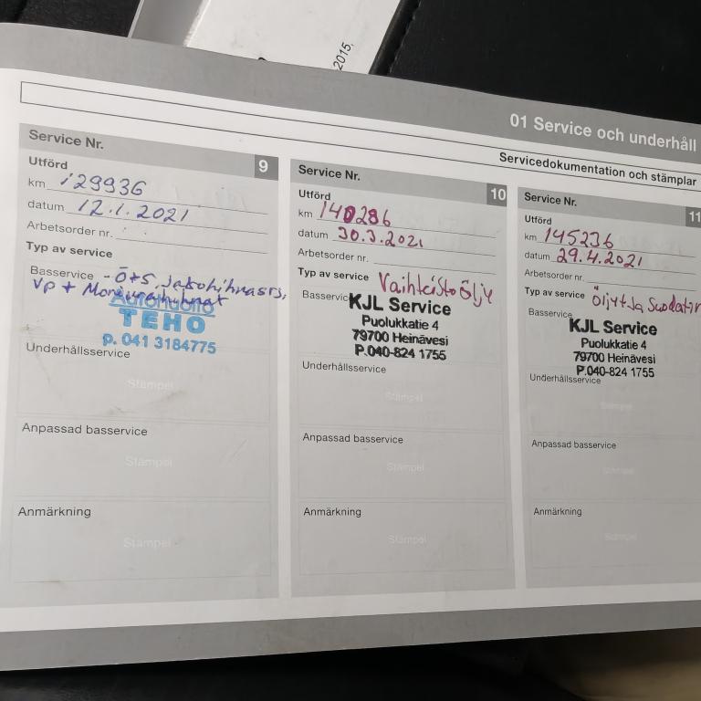 - Viimeinen huolto tehty 1.9.2025 299649km.