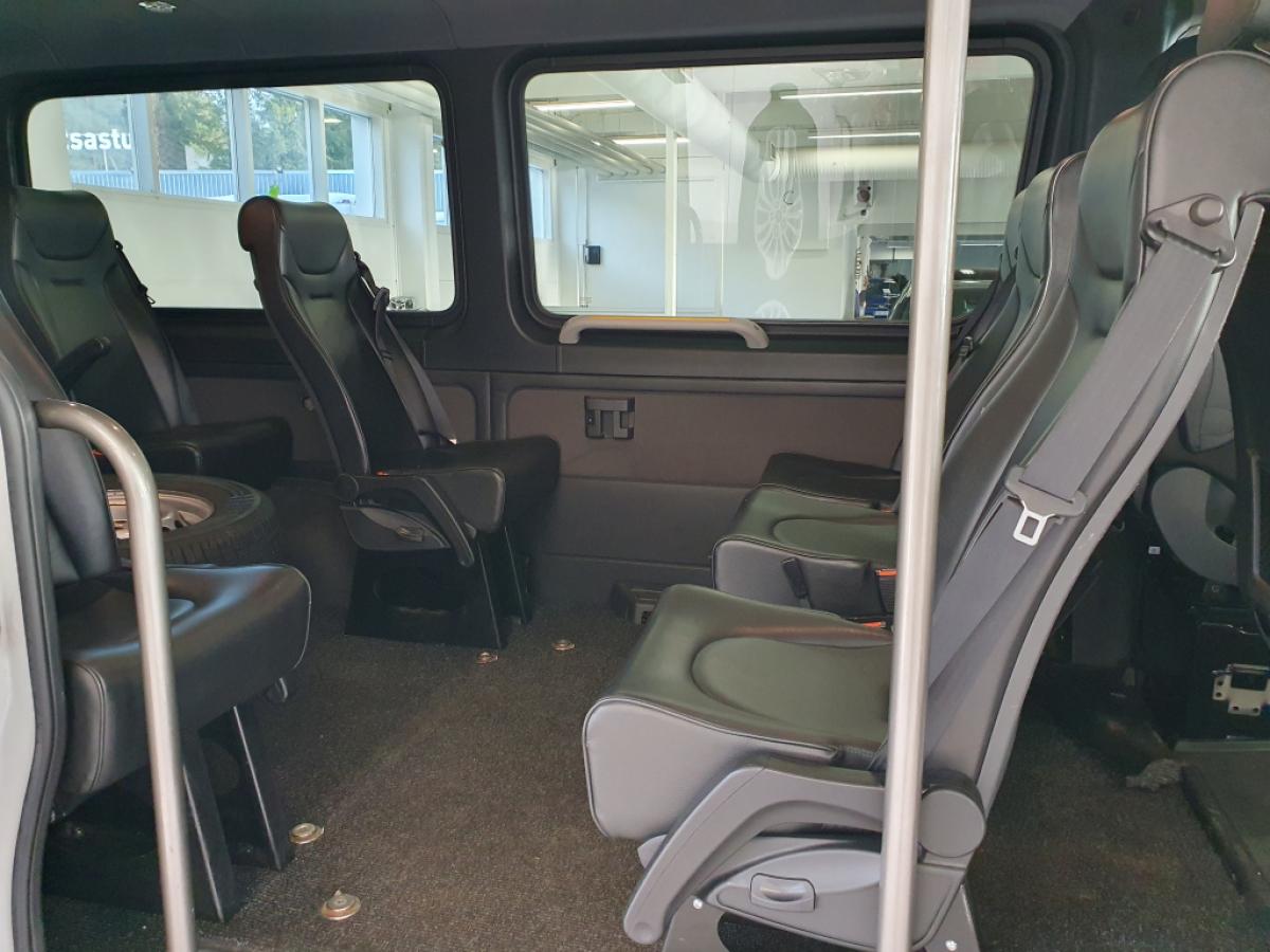 Istuimet 1+8 ja kahdelle pyörätuolille paikat.