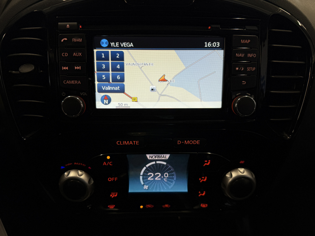 ESP -ajovakaudenhallintajärjestelmä,Automaattinen ilmastointi ja raitisilmasuodatin,Kaksi ISOFIX-lastenistuimen kiinnityskohtaa takaistuimissa,Kuljettajan istuimen korkeussäätö,Lämmitettävät etuistuimet,Suhteessa 60:40 jaettu taittuva takaistuin,Tasku matkustajan etuistuimen selkänojassa,Vakionopeussäädin ja nopeudenrajoitin,Ajotietokone,Sähkötoimiset etu- ja takaikkunat,Takalasin pyyhkimessä tihkutoiminto,Tuulilasinpyyhkijät, joissa on ajonopeuden mukaan säätyvä tihkutoiminto,6 turvatyynyä (kuljettajan, etumatkustajan ja sivuturvatyynyt sekä turvaverhot), poiskytkettävä etumatkustajan turvatyyny,ABS-jarrut, hätäjarrutustehostin ja EBD,Ajoasetusten ja tietojen määritys Nissan Dynamic Control -järjestelmän avulla,Digitaalinen kello ja ulko lämpötilan mittari,Bluetooth®-audio suoratoisto,Matkapuhelimen hands free -toiminto Bluetooth®-yhteyden avulla,MP3-liitäntä,USB-liitäntä ja iPod®-yhteys,Äänentoiston näppäimet ohjauspyörässä,Yhden levyn AM /FM CD -soitin ja neljä kaiutinta,Takaovien lapsilukot